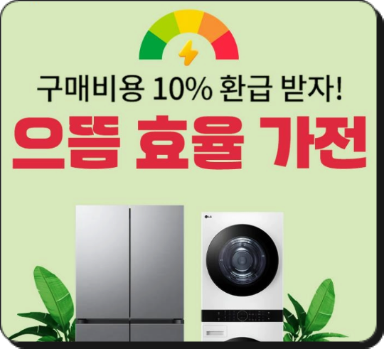 - 가계 부담 절감: 고효율 가전 구매 시, 구매가의 10%를 환급(최대 30만 원)받을 수 있습니다.